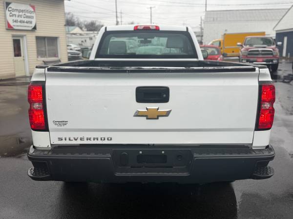 2018 Chevrolet Silverado Regular Cab Long Bed 4x2 Work Truck- This 2018 Chevy work truck may have some miles but it runs and drives as well as anything on the lot. Paint and body are actually not too bad, but it does have it's share of small scuffs and chips. No rust or major damage. On the interior, the seats have some light staining, and several of the plastic panels have scratches and scuffs, No power windows, but does have back up camera, radio and power locks. It was used as a work truck. The original sticker is in the truck. It was almost $30,000 new! Truck shows to get 24 mph highway 18 city. Just a good cheap everyday work truck. Haul the trash, haul the boat or just haul you around.